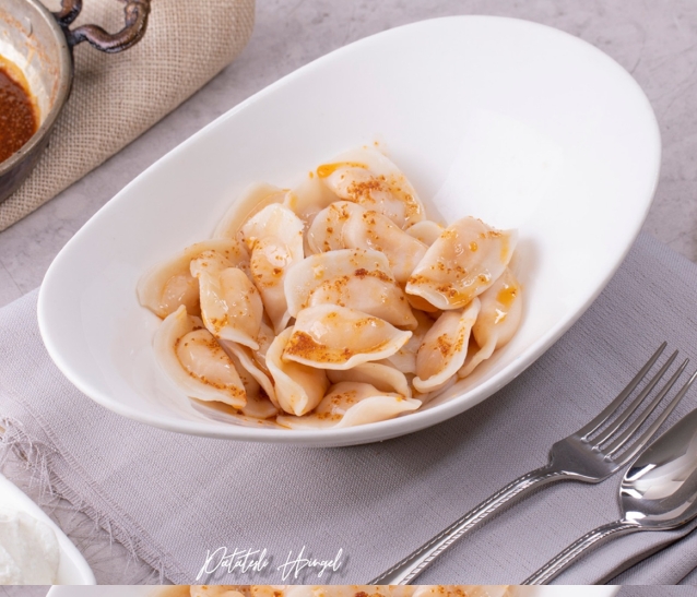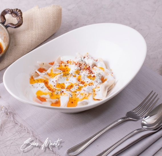 Ev yapımı mantı , Tava yoğurdu ve Taşarzade Tereyağı ile Servis Edilir
